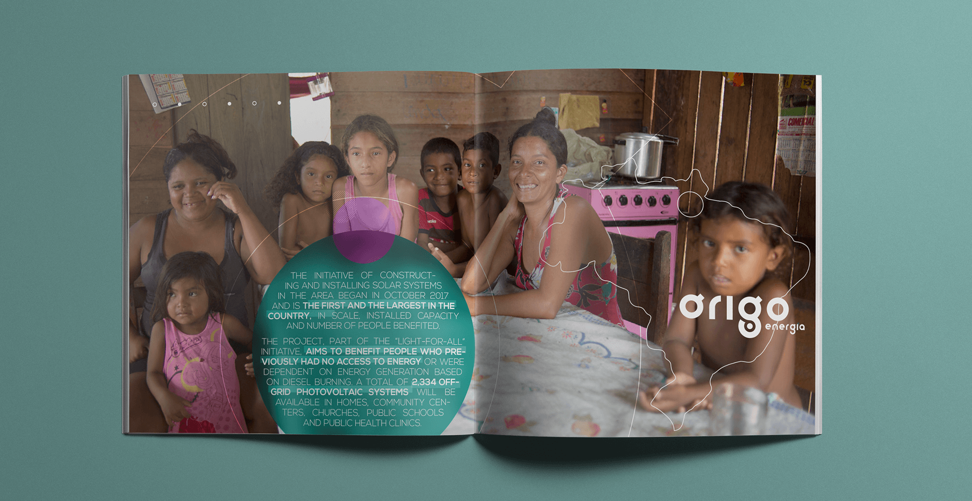 Brochure made for Órigo Energia which values the social work that the company develops in poor communities.